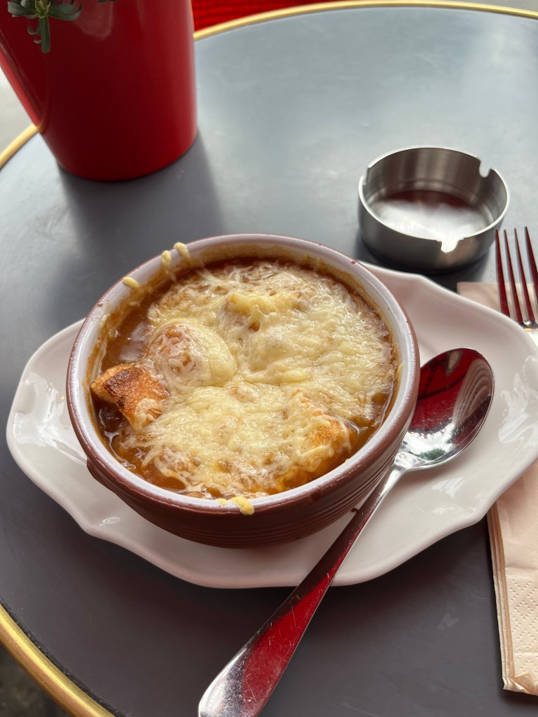 I had a series of several minor misfortunes upon actually arriving in Paris—some trouble getting the metro from the airport, losing an earring, both my intended lunch options closed—but I ended up going to the Arc Du Triomphe early and getting some tasty onion soup there, so it all ended up good!