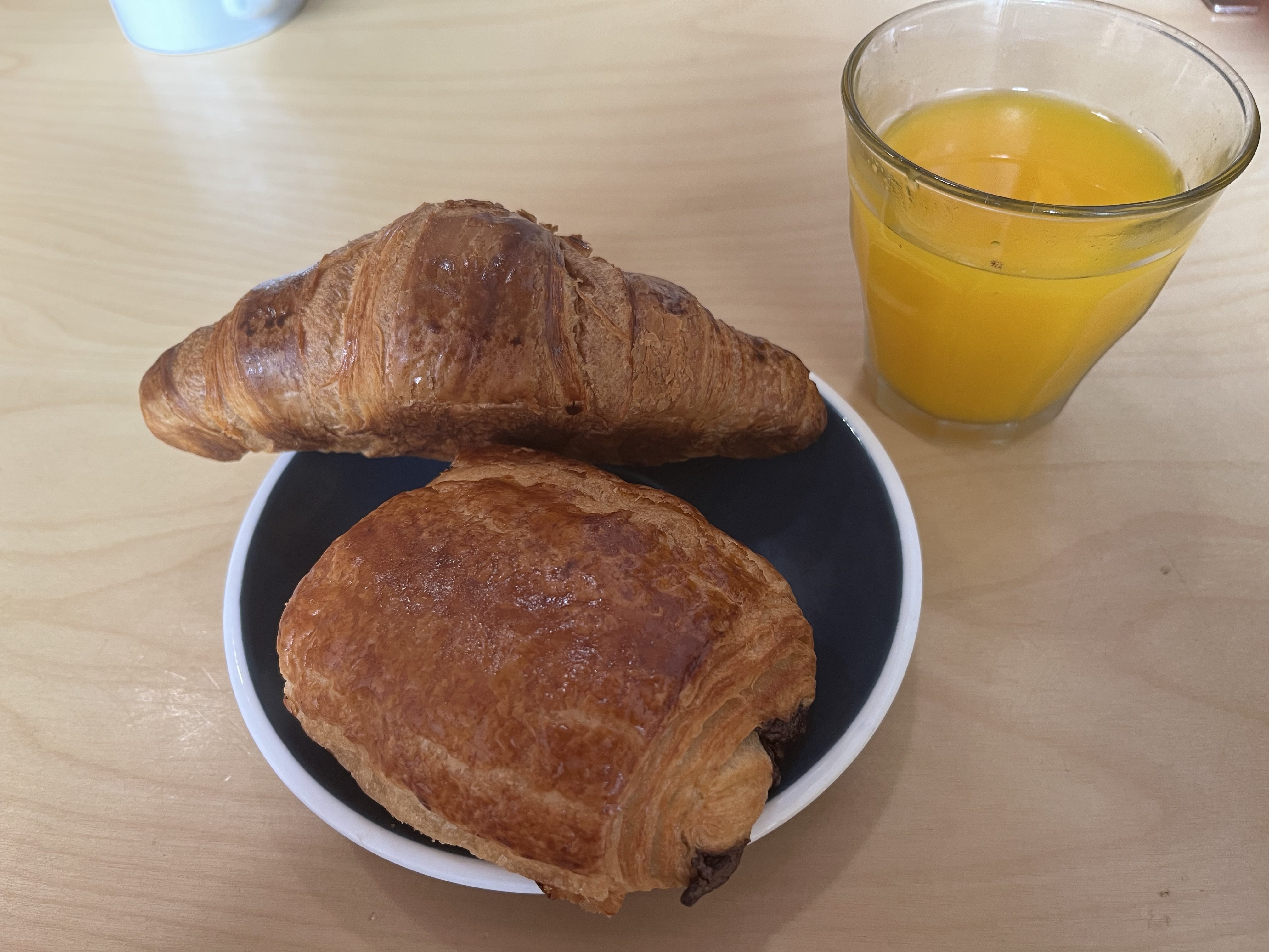 If I’d ever had chicory before this brunch, I can’t remember it, so I was surprised by how much I liked it there! I tried to find some in a grocery store before I flew home, but all I could get my hands on was aggressively mediocre-to-subpar Nestle instant coffee-with-chicory powder. I’m still trying to figure out the ideal way to concoct that powder into something tasty with what I have access to in the lunchroom coffee bar at work, and it’s not undrinkable, but definitely nowhere near as nice as either of the chicory drinks I had in Paris. I’ll have to keep an eye out for the good stuff on the rest of my travels in Europe and when I come back to Claremont.