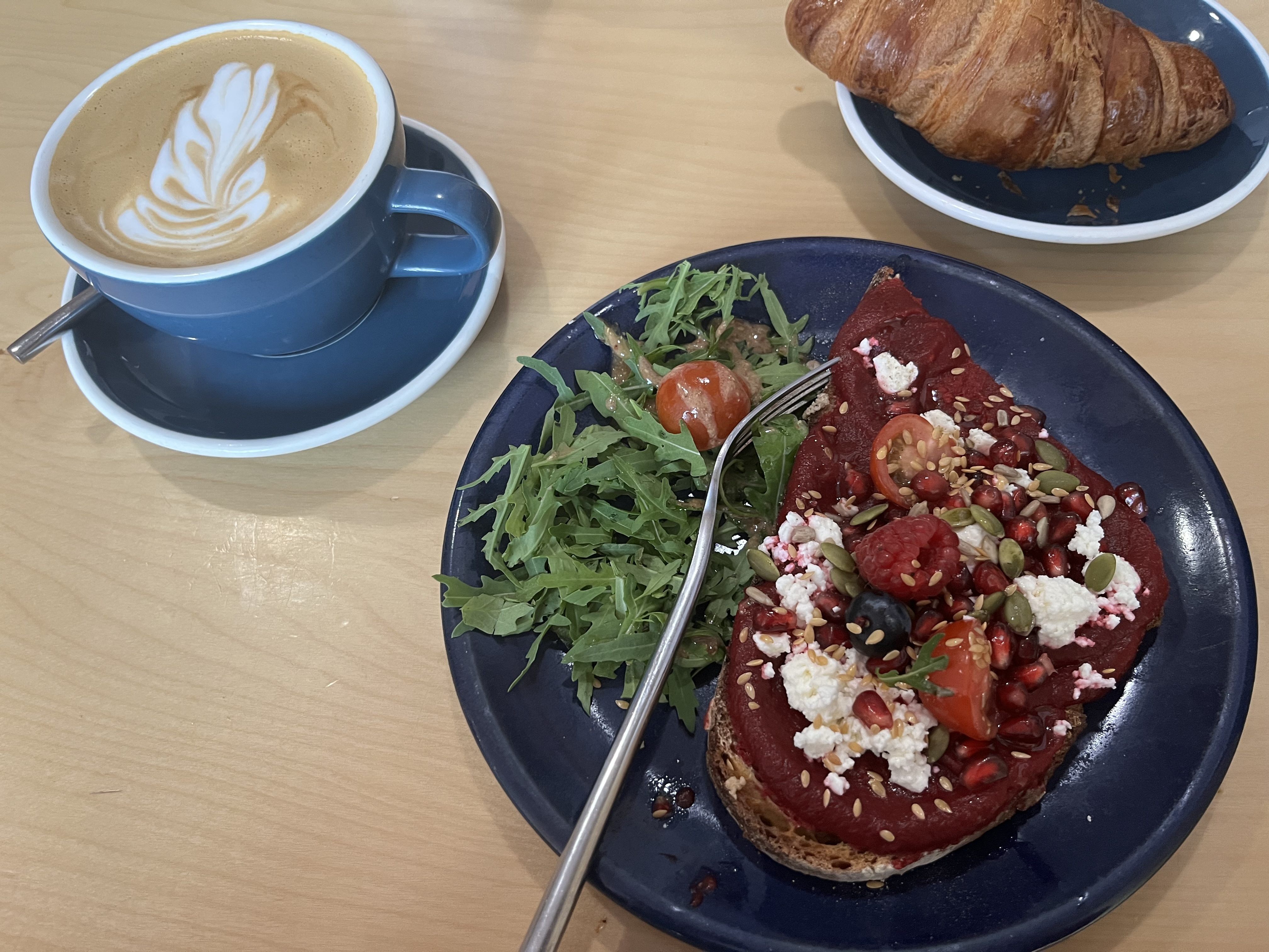 After Saint-Chapelle, I had a nice brunch at a little café about half an hour away with some nice pastries, a slightly soggy beetroot-feta toast concoction, and—most notably to me—a chicory latte.